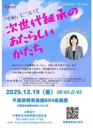 「平和について 次世代継承のあたらしいかたち」講演会を開催します!